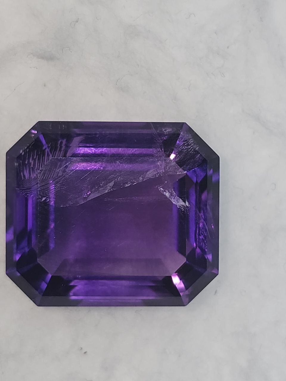 Цвет: насыщенный фиолетовый. Цистота: видимые включения/SI. Огранка: Урал.